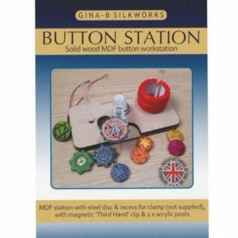 Complete with a "Third Hand" clip and 2 acrylic rods, this station is designed for use on the table to aid in button making.